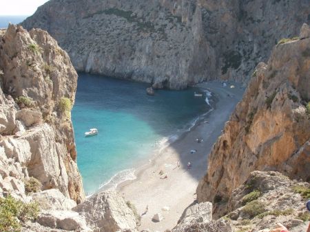 You can cross the canyon and admire the rare beauty as well as the old church, Agio Antonio (St. Antonio), which was the area's religious centre during the time of the hermits. In the church's yard there is a well, which still has drinkable water. Around half an hour's walk further down, you can enjoy a swim and relax at the beach.