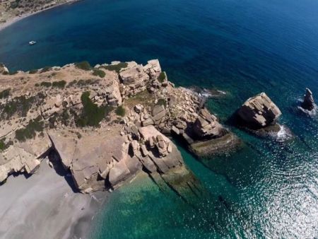 Triopetra consists of two beaches, which are separated by a small peninsula. At the edge of the peninsula, in the sea, three majestic rocks rise. Triopetra is named after these rocks, since it means “Three Rocks”.
